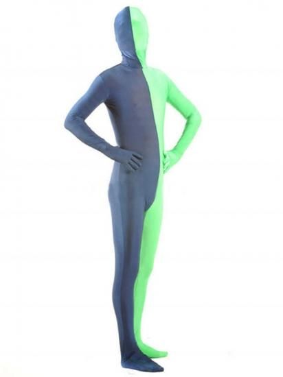 全身タイツ グリーン&グレー ユニセックス 大人用 仮装コスチューム カラーブロック 開口部のない全身タイツ 男女共用 S M L XL 2XL 3XL 145cm-200cm