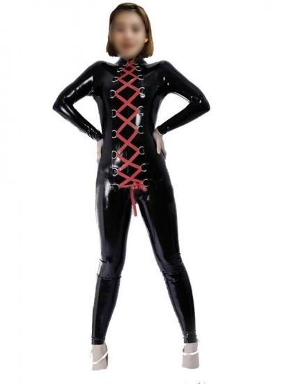ラテックスキャットスーツ ブラック レースアップ セクシー コスチューム 全身タイツクリスマス ハロウィン 忘年会大人 男女共用 S M L XL 2XL 3XL 145cm-200cm