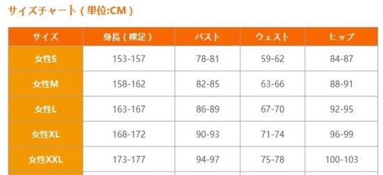 女性のサイズ女性S女性M女性L女性XL女性XXL